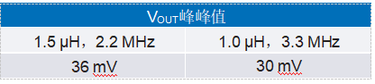 新設(shè)計(jì)在控制環(huán)路速度方面提升了約20%,隨后進(jìn)行了與初始設(shè)計(jì)相同的從0.5 A到1 A再到0.5 A的負(fù)載瞬態(tài)測(cè)試。測(cè)量結(jié)果顯示,輸出電壓的峰峰值為30 mV。這些結(jié)果與采用1.5 μH電感器設(shè)計(jì)的結(jié)果在表2中進(jìn)行了對(duì)比。
