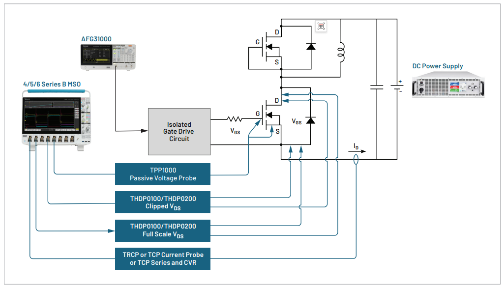 動態(tài)導(dǎo)通電阻(RDS(on))是電源轉(zhuǎn)換器設(shè)計人員理解電荷俘獲效應(yīng)影響的重要參數(shù)。然而,關(guān)于其測量技術(shù)的知識體系仍相對較新。傳統(tǒng)的動態(tài)RDS(on)測量技術(shù)依賴于二極管鉗位電路,使示波器能夠以足夠的分辨率測量漏源電壓,而不會使示波器輸入過載。泰克為4、5和6系列MSO示波器推出的寬禁帶雙脈沖測試(WBG-DPT)測量軟件引入了一種新的軟件鉗位方法,采用獨特的雙探頭技術(shù),無需使用鉗位電路。
