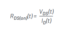 動態(tài)RDS(on)是指FET在開關(guān)過程中導(dǎo)通時,漏極與源極端子之間的平均電阻。漏源電阻RDS(on)是所有FET的重要參數(shù),因為它是傳導(dǎo)損耗和效率的一個關(guān)鍵因素。RDS(on)通過漏源電壓(VDS)與漏極電流(ID)的比值計算,并可表示為時間的函數(shù):