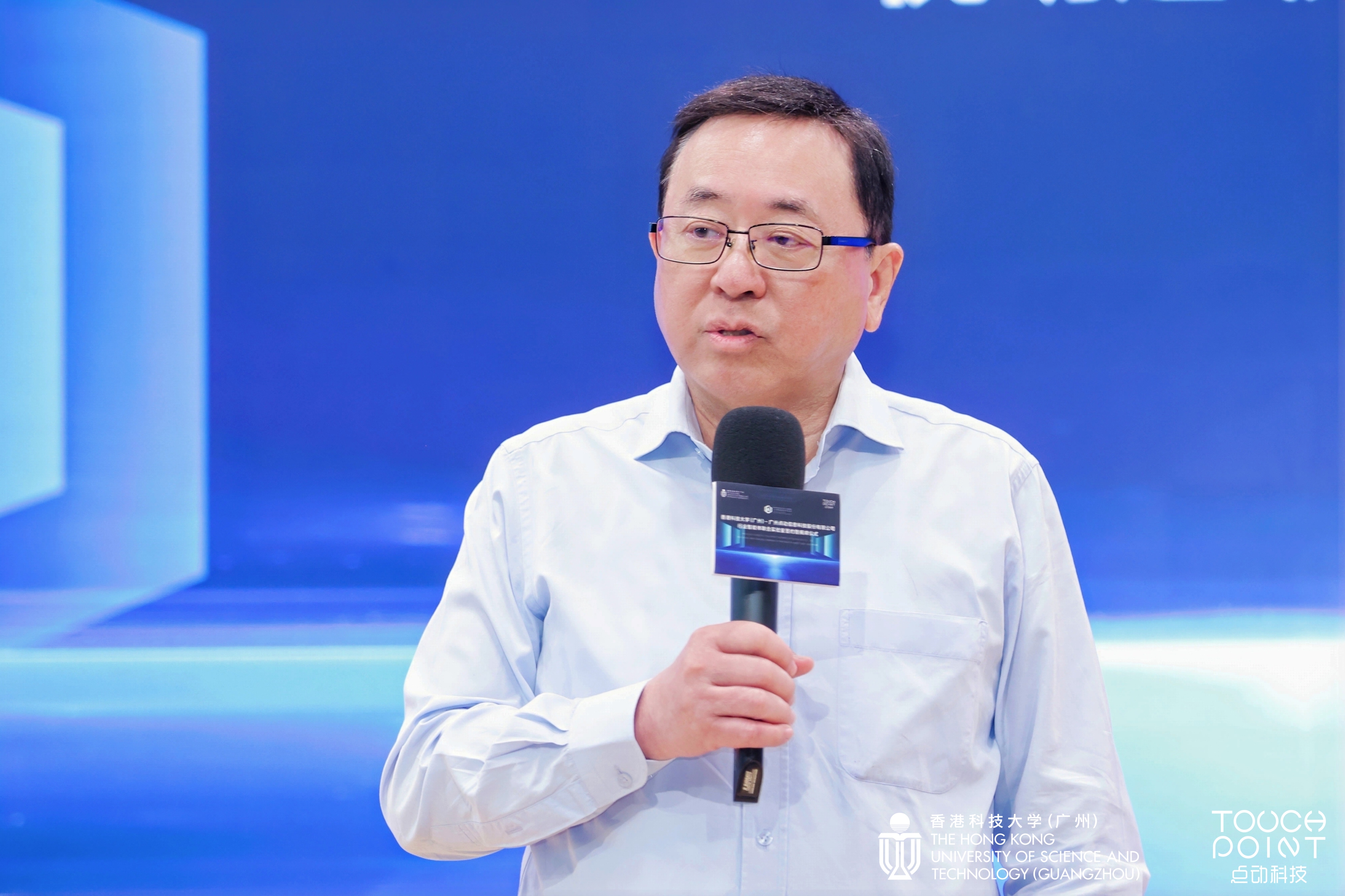 香港科技大學(xué)(廣州)校長(zhǎng)倪明選教授、署理副校長(zhǎng)(研究)李世瑋教授、協(xié)理副校長(zhǎng)(知識(shí)轉(zhuǎn)移)熊輝教授、點(diǎn)動(dòng)科技董事長(zhǎng)陳科斌先生、點(diǎn)動(dòng)科技深圳公司總經(jīng)理陳永潔女士、點(diǎn)動(dòng)科技董事張培揚(yáng)先生、智算中心總經(jīng)理?xiàng)钛┓逑壬约奥?lián)合實(shí)驗(yàn)室技術(shù)管理委員會(huì)成員、人工智能學(xué)域師生代表出席了本次啟動(dòng)儀式。