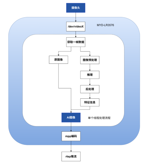 米爾采用線程池方案,將上述過程通過線程處理,充分利用4個A72和4個A53資源,同時采用RGA來做圖片裁剪和放大。將CPU,GPU,NPU,VPU4個模塊協(xié)同工作,資源最大限度開發(fā)使用。