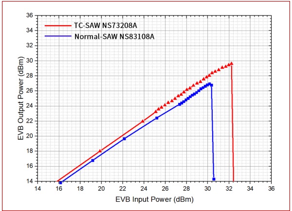 3. TC-SAW的功率耐受比Normal-SAW高