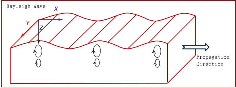 圖3 TC-SAW 工作的波模式:Rayleigh Wave