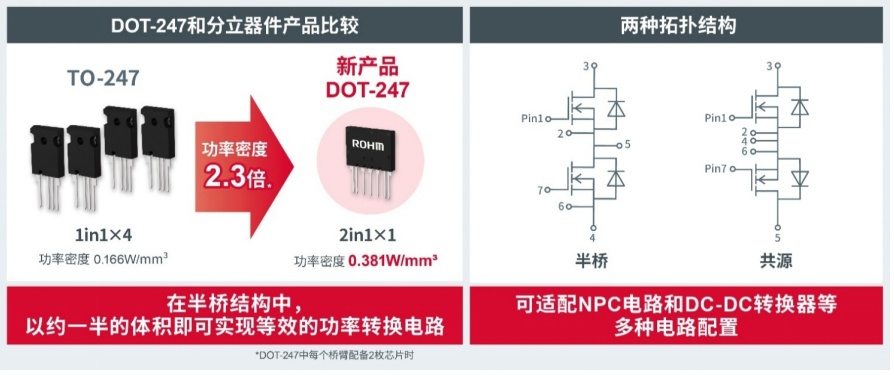 ROHM推出二合一SiC模塊“DOT-247”,可實(shí)現(xiàn)更高的設(shè)計(jì)靈活性和功率密度