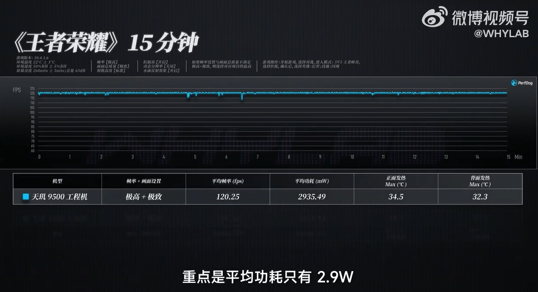 具體到玩家體感,WHYLAB《王者榮耀》測試“滿幀一條直線”,平均功耗僅2.9W;
