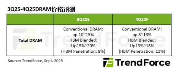 TrendForce集邦咨詢:4Q25 DRAM價格延續(xù)漲勢,服務(wù)器需求提前發(fā)酵、舊制程產(chǎn)品漲幅仍較大
