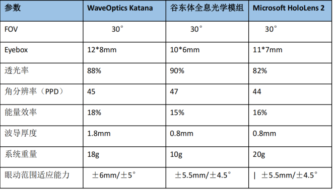 選取MicrosoftHoloLens2(基于LCoS+衍射光波導架構)及WaveOpticsKatana(30°FOV光機模組)作為性能基準對象,從光學性能、系統(tǒng)集成度與人因工程三大維度開展對比分。