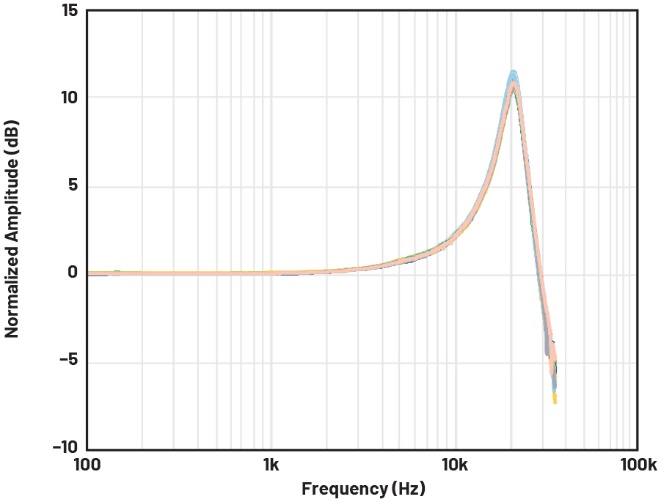 圖3.ADXL1002的頻率響應(yīng)、高頻(>5 kHz)振動(dòng)響應(yīng);