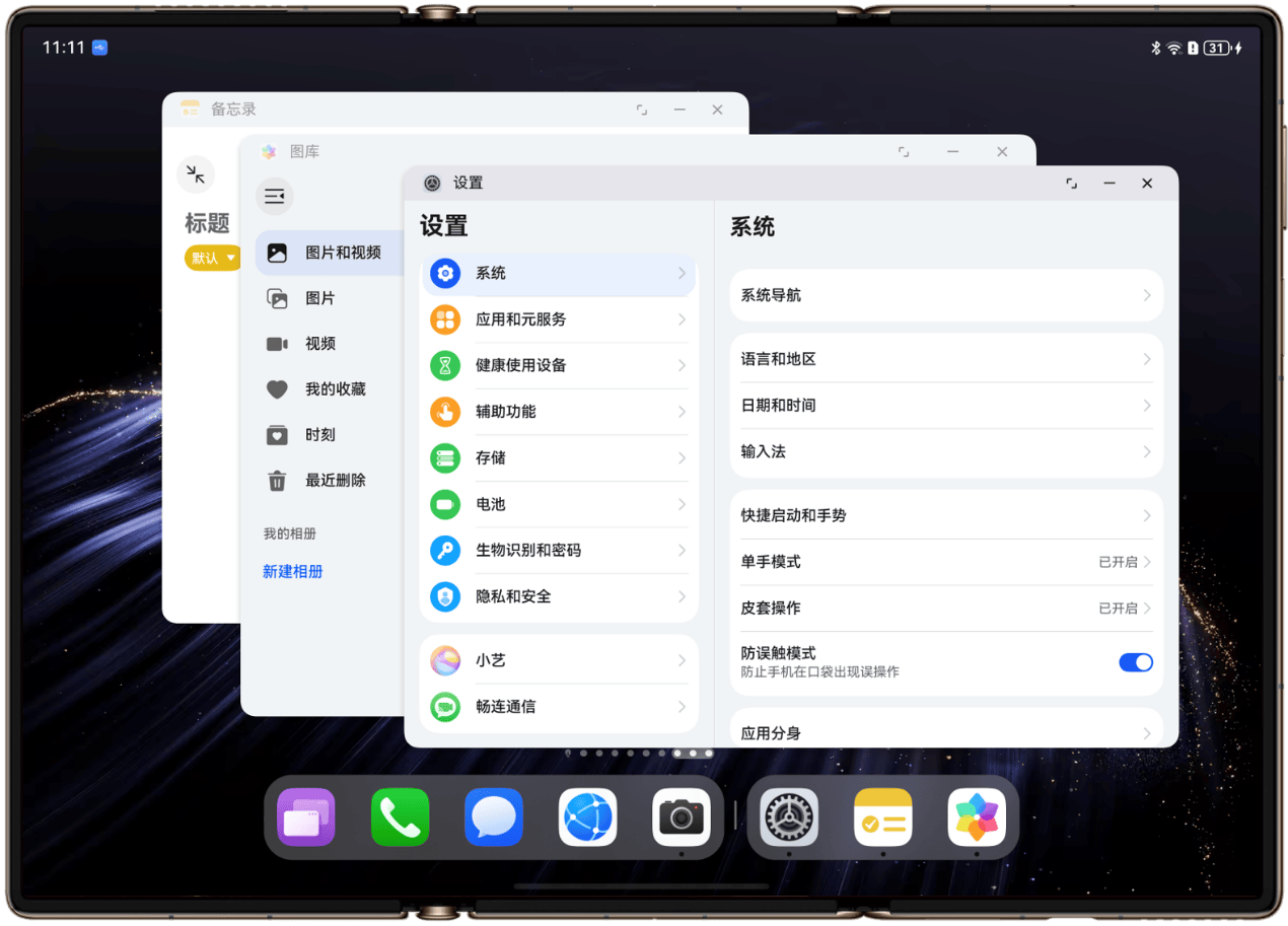 華為Mate XTs非凡大師全新推出自由多窗模式,突破傳統(tǒng)窗口限制,讓移動(dòng)端邁向PC級體驗(yàn)。在三屏態(tài)下,應(yīng)用能夠像在電腦上一樣懸浮、拖拽、縮放、層疊顯示。通過適配鴻蒙系統(tǒng)的橫向斷點(diǎn)布局機(jī)制,并配置自由多窗模式,應(yīng)用可識別自由窗口寬度,自動(dòng)切換最優(yōu)界面布局。多應(yīng)用并行,操作流暢如電腦桌面。