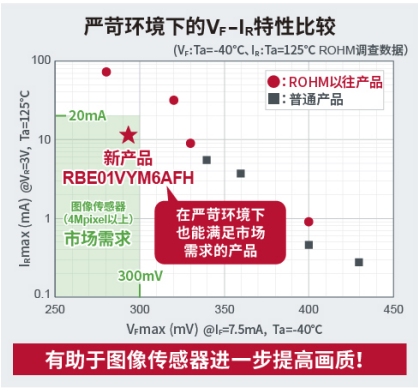 中國(guó)上海,2025年10月9日——全球知名半導(dǎo)體制造商ROHM(總部位于日本京都市)今日宣布,開發(fā)出一款創(chuàng)新型保護(hù)用肖特基勢(shì)壘二極管“RBE01VYM6AFH”,該產(chǎn)品在低VF(正向電壓)和低IR(反向電流)這對(duì)此消彼長(zhǎng)的特性之間實(shí)現(xiàn)了高維度平衡,可為ADAS攝像頭等配備了像素日益提高的各種圖像傳感器的應(yīng)用,提供高可靠性的保護(hù)解決方案。