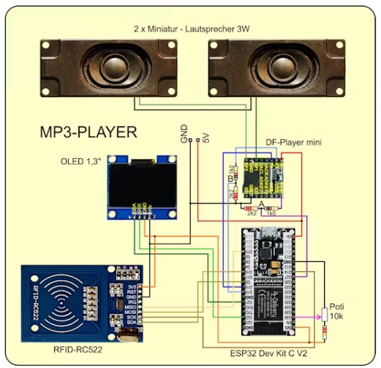 嚴(yán)格來說,我是通過關(guān)于ESP32/ESP8266 dem Raspberry Pi Pico和那臺PC上的串行接口的文章產(chǎn)生了這篇文章的想法。我想展示RS232端口上的其他一些應(yīng)用程序。這里使用的DFPlayer Mini是通過串行接口控制的。由于使用了雙向數(shù)據(jù)交換,因此只需一個ESP32或Raspberry Pi Pico作為控制器。PC也可以通過RS232 TTL轉(zhuǎn)換器直接與DFPlayer Mini進行對話,但我將其省略。