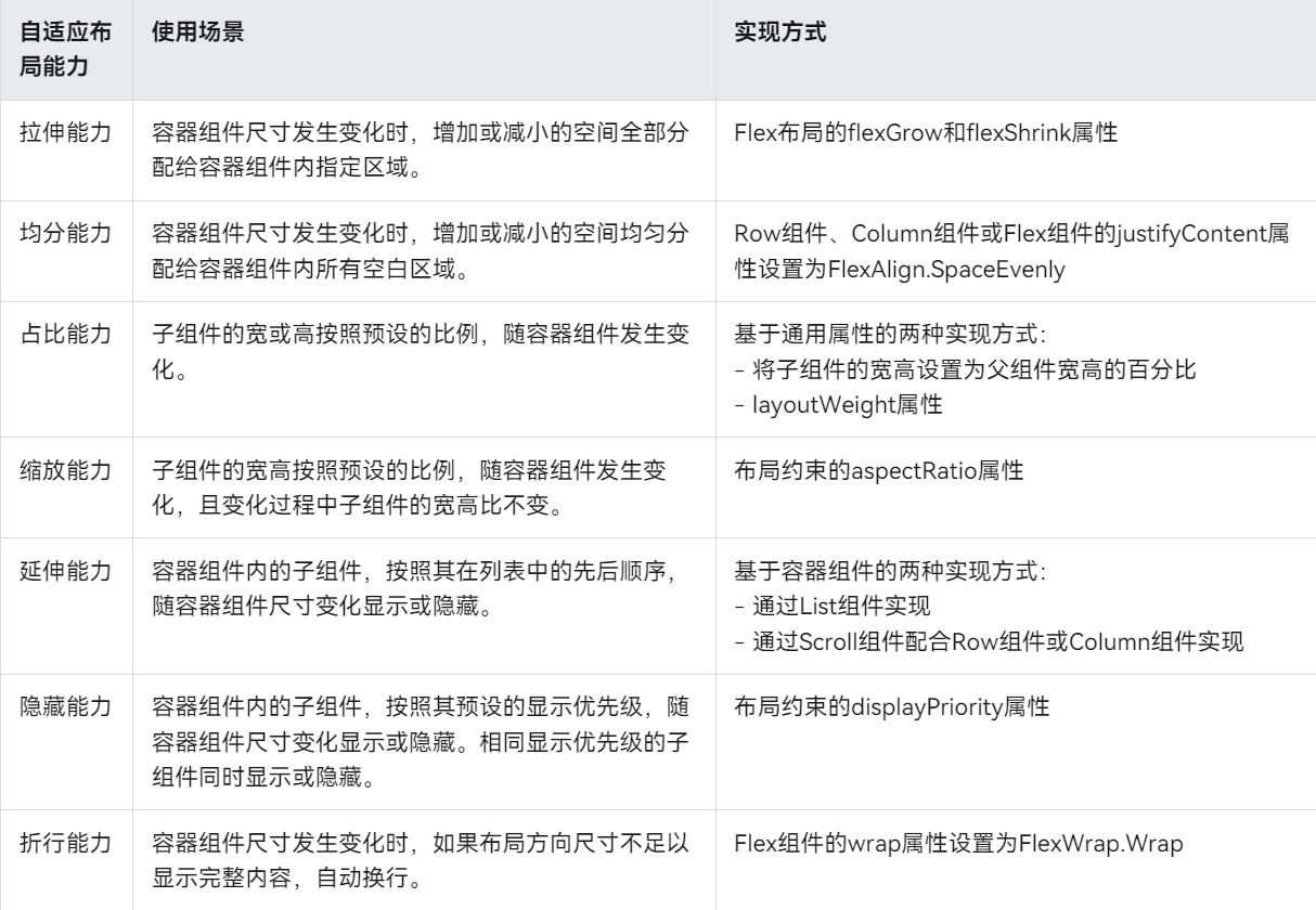 長(zhǎng)相思在界面級(jí)一多設(shè)計(jì)中采用自適應(yīng)布局。針對(duì)常見的開發(fā)場(chǎng)景,方舟開發(fā)框架提煉了七種自適應(yīng)布局能力,這些布局可以獨(dú)立使用,也可多種布局疊加使用。