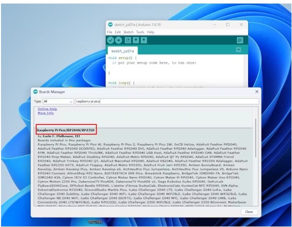 要安裝給定的代碼,我們首先需要在Arduino IDE中安裝對Raspberry Pi Pico的支持。