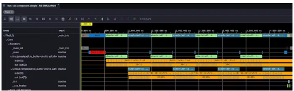 第一個,1510400ps意味著第一個樣本在1.5104 us之后出現(xiàn)在AI引擎陣列的輸出中。因此這大概就是AI引擎數(shù)組的初始延遲(從第一個樣本輸入到第一個樣本輸出)。