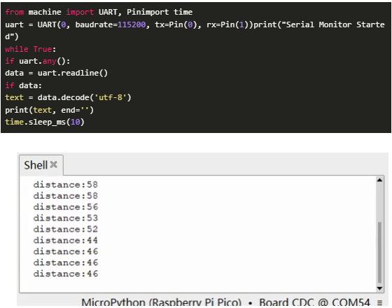 ?通過(guò)UART接收和打印距離測(cè)量數(shù)據(jù)。