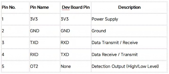 將Rd-03_V2雷達(dá)模塊的引腳連接到目標(biāo)開(kāi)發(fā)板的串口引腳。