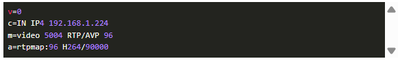 其中前3個用于配置視頻流,ip和端口用于定義接收地址,后2個用于定義編解碼器