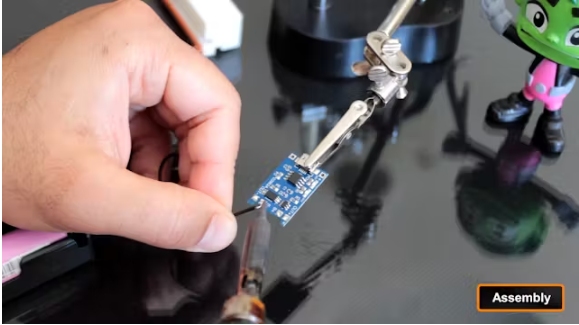 打印完所有的3D模型后,我開始組裝電子元件。我將導線焊接到每個電位器和SPST開關上,然后將它們安裝到指定的支架上。每個電位器都是通過擰緊螺絲來固定的,電線穿過支架側(cè)面的一個小孔。同樣,將開關壓入其孔中,其導線通過相應的導線通道饋送。接下來,我專注于電路的電池充電部分。我將電池焊接到TP4056充電模塊的B+和B-端口上。用藍色導線將TP4056的OUT-連接到降壓轉(zhuǎn)換器的VIN-,而SPST開關則連接到控制OUT+和VIN+端子之間的連接。一旦這些連接完成,我將電源組件安裝到設備的底座上。TP4056模塊是安全的超級膠塞后,它滑到適當?shù)牡胤?,我也超級膠合的立場持有開關到基地。對于控制系統(tǒng),我將Arduino的所有必要組件焊接到一個perfboard上。雖然設置可能看起來很亂,但最終組裝將是完全封閉的。然后我用熱熔膠把兩個NeoPixel環(huán)粘在位置上,第一個粘在底部,第二個粘在頂部。后超膠第二站我隱藏了電子超膠“側(cè)蓋”到它。