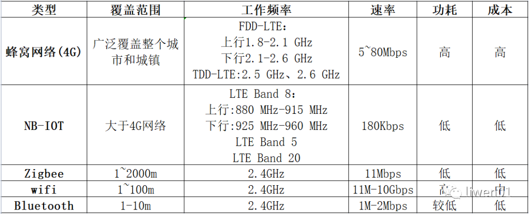 在實際開發(fā)設計的時候,我們選擇通信模塊主要考慮的參數(shù)有:傳輸帶寬,傳輸距離,功耗以及成本。