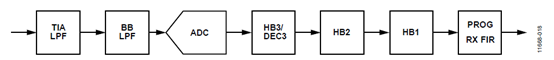 接收通路分為兩級(jí)模擬濾波器和四級(jí)數(shù)字濾波器,連接示意圖如圖6-6所示: