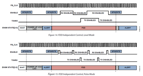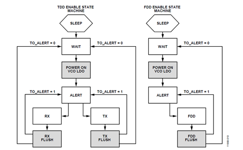 其中Force Rx、Force Tx、Force Alert State用于在TDD模式下,SPI控制狀態(tài)機(jī)。而在FDD模式下,Force Rx信號(hào)是無用的,從ALERT->FDD狀態(tài)通過Force Tx控制。