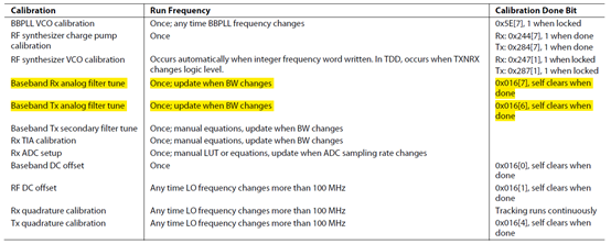 AD9361的發(fā)射和接收的頻率綜合器是獨(dú)立的,因此TX和RX的RF VCO校準(zhǔn)需分別進(jìn)行。