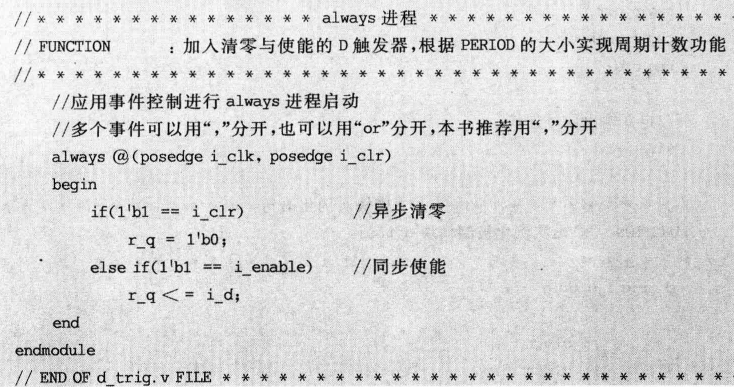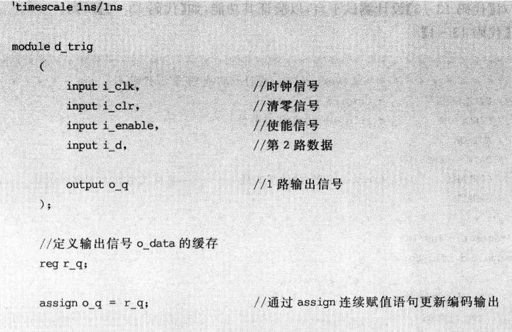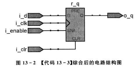 此外,還可以對(duì)【代碼13-1】的D觸發(fā)器加入一些控制信號(hào),如清零信號(hào)、使能信號(hào),具體實(shí)現(xiàn)如【代碼13-3】所列。