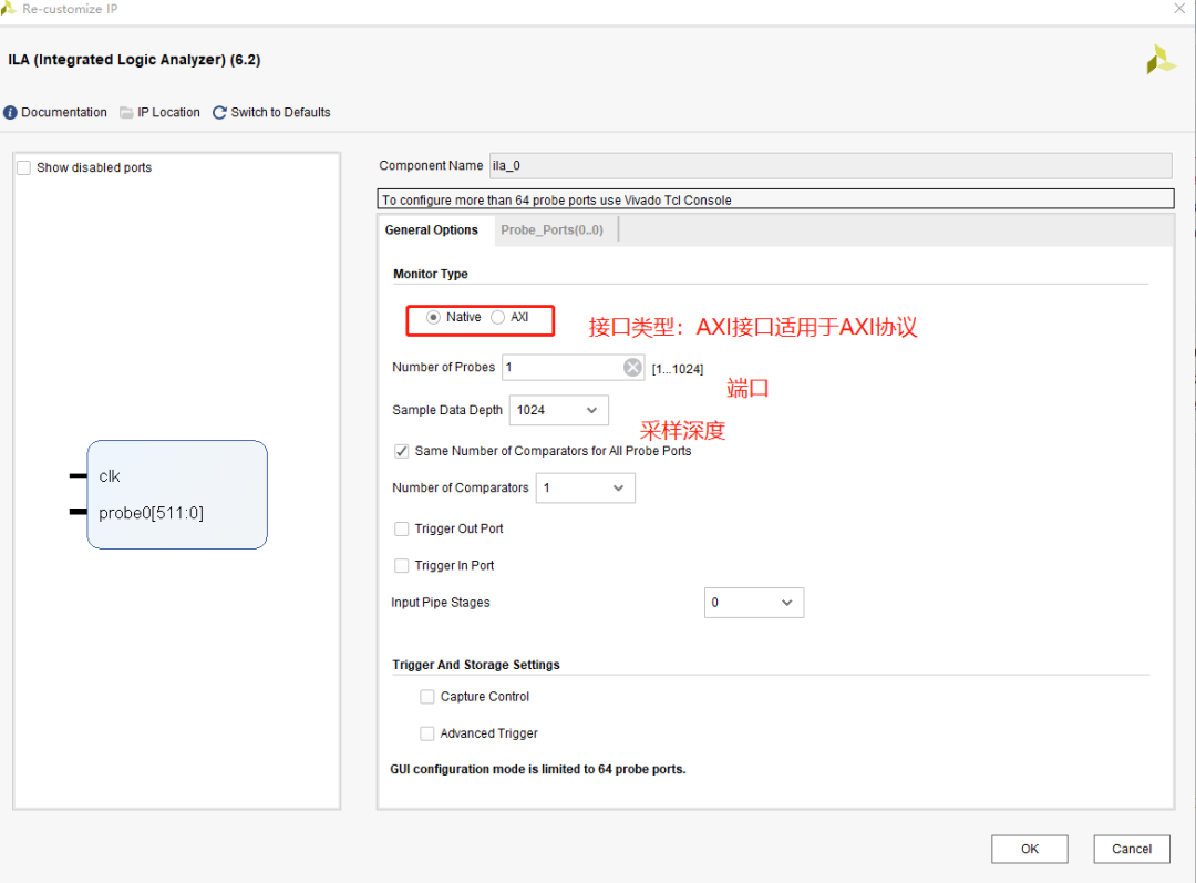 集成邏輯分析儀 (Integrated Logic Analyzer :ILA) 功能允許用戶在 FPGA 設(shè)備上執(zhí)行系統(tǒng)內(nèi)調(diào)試后實(shí)現(xiàn)的設(shè)計(jì)。當(dāng)設(shè)計(jì)中需要監(jiān)視信號(hào)時(shí),應(yīng)使用此功能。用戶還可以使用此功能在硬件事件和以系統(tǒng)速度捕獲數(shù)據(jù)時(shí)觸發(fā)。