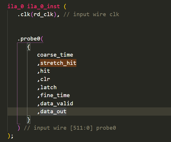 例化IP,并將所需要的信號(hào)放入 Probe 里面