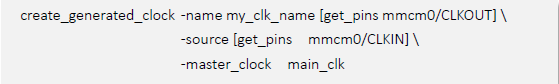 推薦的做法是,由用戶來指定這類衍生時鐘的名字,其余頻率等都由Vivado 自動推導(dǎo)。這樣就只需寫明create_generated_clock 的三個option,其余不寫即可。如上所示。當(dāng)然,此類情況下用戶也可以選擇完全由自己定義衍生時鐘,只需補(bǔ)上其余表示頻率/相位關(guān)系的option,包括-multiply_by 、-divide_by 等等。需要注意的是,一旦Vivado 在MMCM/PLL/BUFR 的輸出檢測到用戶自定義的衍生時鐘,就會報告一個Warning,提醒用戶這個約束會覆蓋工具自動推導(dǎo)出的衍生時鐘(例外的情況見文章下半段重疊時鐘部分的描述),用戶須保證自己創(chuàng)建的衍生鐘的頻率等屬性正確。