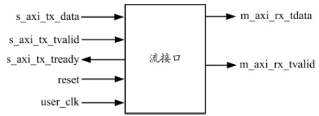 圖 2 中, tx_tready 在輸出信號(hào)被接收并且數(shù)據(jù)準(zhǔn)備發(fā)送時(shí)斷言, tx_tvalid 在輸出流信號(hào)或源信號(hào)有效時(shí)斷言,這樣將數(shù)據(jù)從應(yīng)用程序移動(dòng)到 tx_data 總線并執(zhí)行流控制,實(shí)現(xiàn)發(fā)送。當(dāng) tx_tvalid 取消斷言時(shí),字間會(huì)創(chuàng)建并保留間隙。數(shù)據(jù)到達(dá)接收側(cè)時(shí), rx_tvalid 被斷言, 從用戶接口 rx_tdata 總線將數(shù)據(jù)移動(dòng)到應(yīng)用程序并執(zhí)行流控制,實(shí)現(xiàn)數(shù)據(jù)接收。數(shù)據(jù)必須立即讀取,否則將丟失。 接口使用先進(jìn)先出( FIFO )方式保存數(shù)據(jù),將 rx_tvalid 用作 FIFO 寫使能。