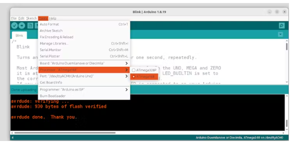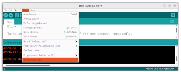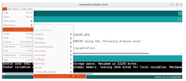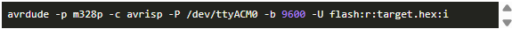 在上傳期間打開詳細(xì)輸出,并查看使用avrdude命令的行。我們的Arduino作為ISP成為-c stk500v1編程電路。稍后我們將使用此信息。