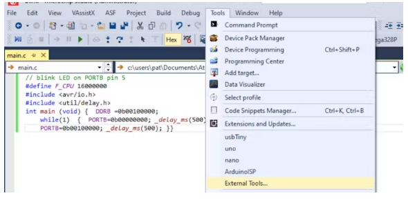 菜單工具->外部工具設(shè)置一個新的編程設(shè)備。