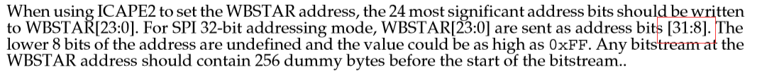 向Kintex7的WBSTAR寄存器寫入下一個加載地址(下表地址為00000000);