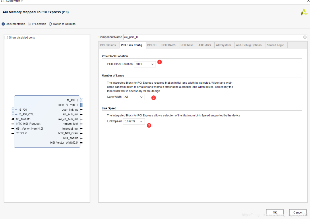 3、PCIE硬核的位置,這里我們的芯片只有一個硬核,所以這里默認即可