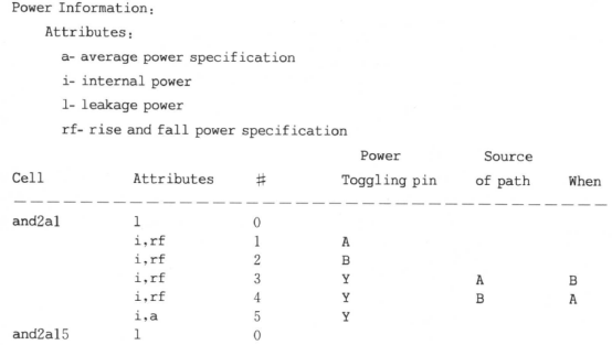 我們也可以在EDA工具中使用report_lib slow -power 命令列出庫中的功耗信息: