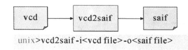 vcd2saif是在UNIX命令行使用的一個程序。vcd2saif程序也可以把VPD文件(二進(jìn)制格式的VCD文件)轉(zhuǎn)化為SAIF格式的文件。如果設(shè)計很大,仿真的時間長,vcd2saif程序可以用管道傳遞的方式把VCD轉(zhuǎn)化為SAIF文件。這時vcd文件不存放在文件里,vcd通過先入先出(First-In First-()nt,簡稱FIFO把數(shù)據(jù)傳給vcd2saif程序,然后產(chǎn)生SAIF文件。轉(zhuǎn)換的SAIF文件里沒有SDPD的信息。如下圖所示: