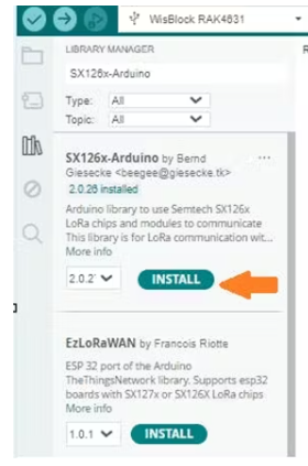 1. 安裝RAK1906傳感器所需的SX126x-Arduino庫(kù)