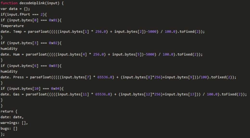 在測(cè)試并將代碼加載到TTN應(yīng)用程序后,應(yīng)該接收到RAK1906傳感器讀取的值。