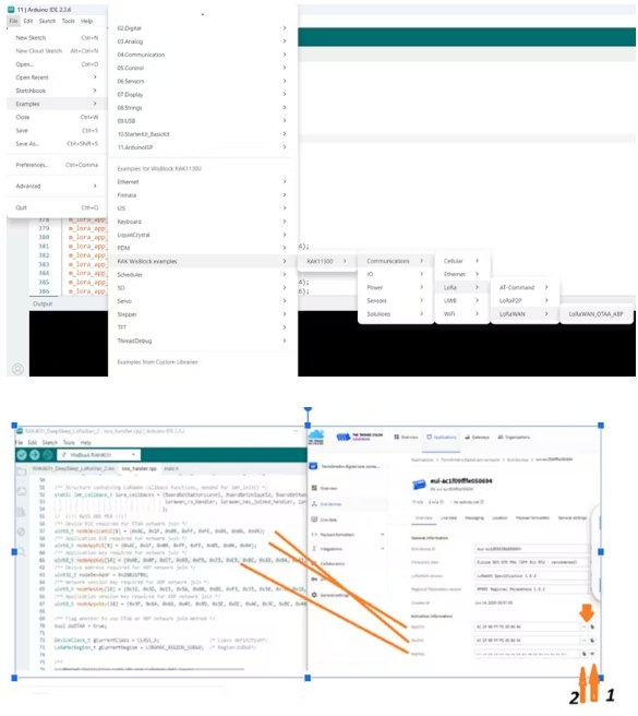 在對(duì)傳感器進(jìn)行檢查后,將TTN中數(shù)據(jù)傳輸和傳感器數(shù)據(jù)傳輸?shù)膬蓚€(gè)示例進(jìn)行合并。為此,將文件修改如下: