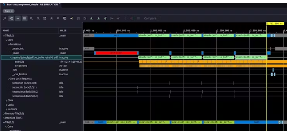 在運行AI引擎模擬器并啟用trace后,我們現(xiàn)在可以看到兩個內(nèi)核并行運行。我們可以看到,第二次調(diào)用kernel first和第一次調(diào)用kernel second是同時發(fā)生的。