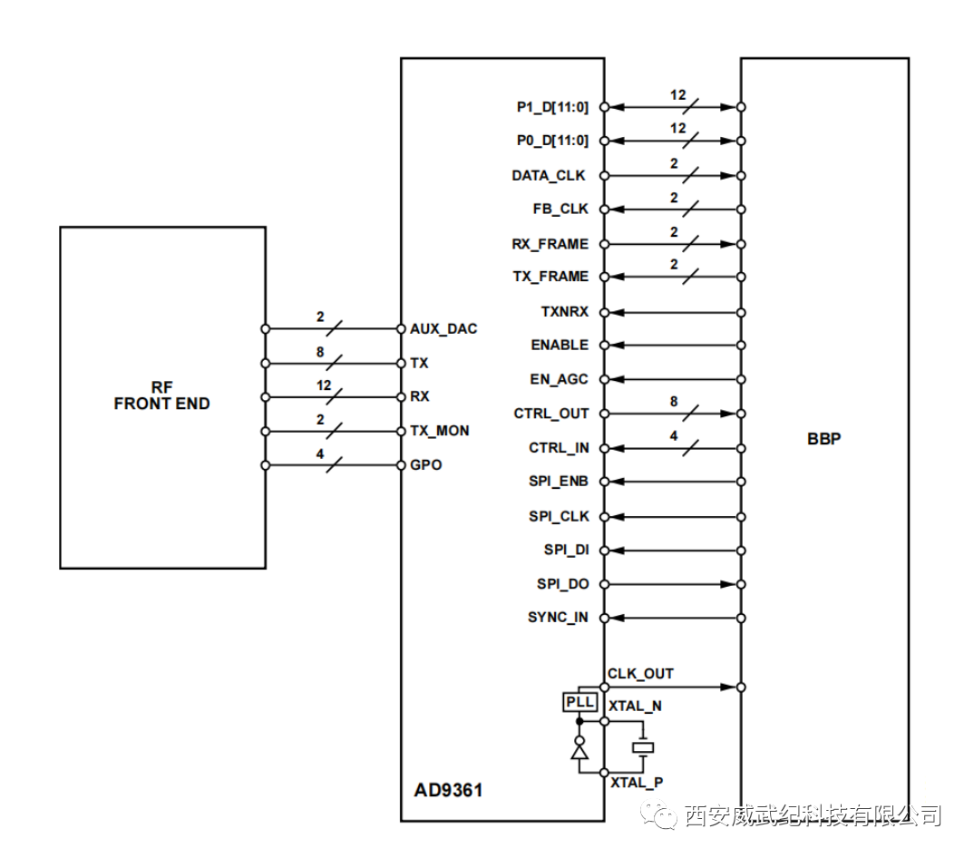 SYNC_IN:用于同步多個AD9361器件之間數(shù)字時鐘的輸入。若未使用此引腳,則將其接地。