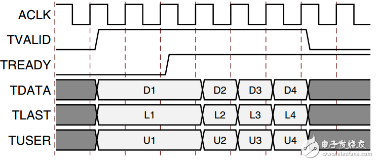 這一模式實際上是對AXI總線的簡化,很多場合下并不完全需要AXI總線強大的流控功能,特別是在AXI總線模塊的上下游均為可進行實時處理的FPGA邏輯電路的情況下。AXI總線的另一個特點就是data packing,需要將不是8bit倍數(shù)位寬的數(shù)據(jù)高位填充從而確保數(shù)據(jù)最小單位是1byte,具體填充方式有所不同。很容易想到,這樣的data packing 功能對SOC中PL與PS部分的交互是十分友好的。