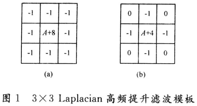 當模板遍歷圖像中的每個像素就得到圖像濾波結果。實現Laplacian高通提升濾波的模板如圖1所示。
