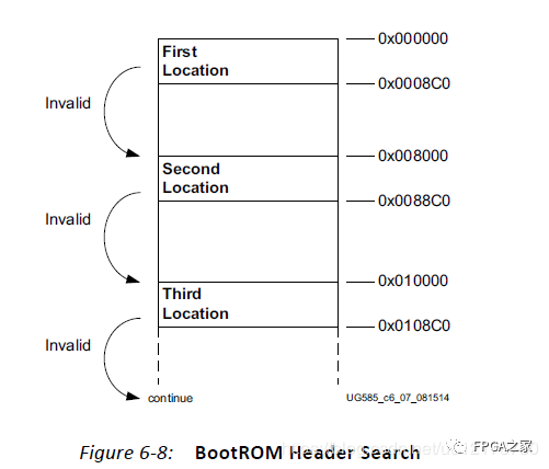 1 BootROM會(huì)首先在FLASH的0x00處尋找Header,依據(jù)就是Image Identification parameter – 0x024 是否等于 ‘XLNX’ . 其次就是檢查Header Checksum — 0x048