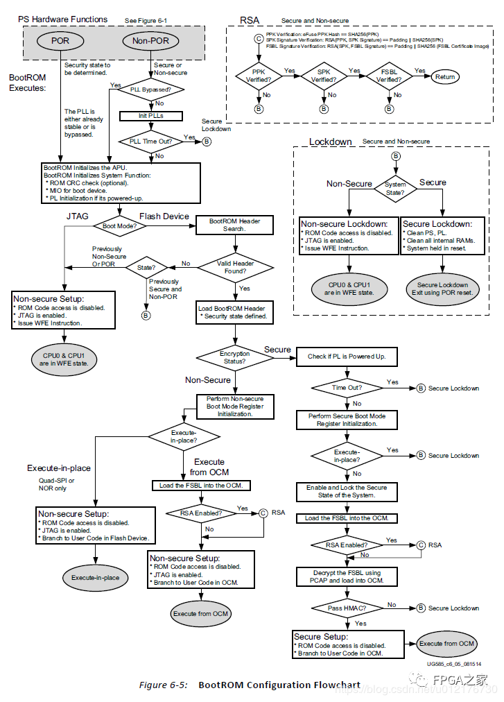 這里將通過(guò)對(duì)比Zynq的TRM和FSBL源碼,來(lái)一步一步解析Zynq的加載流程,如下所示