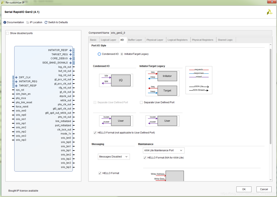 User-Defined Port :可選;采用SRIO stream format,并擁有2個(gè)AXI4-Stream channels;