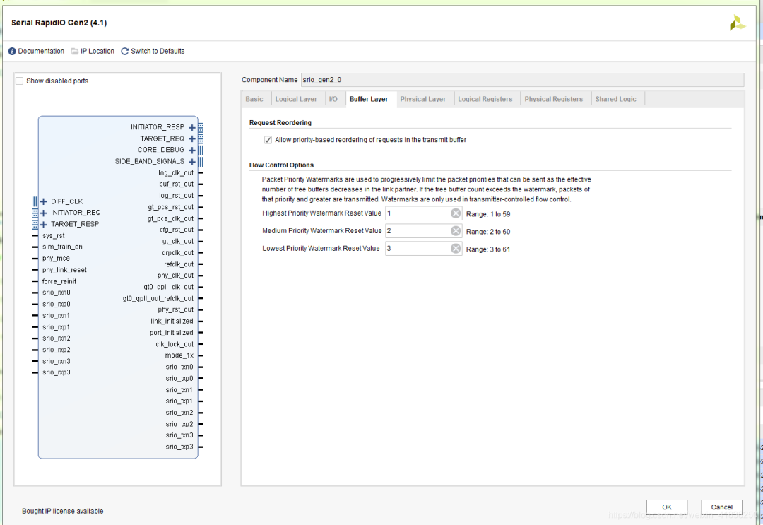 SRIO核核帶寬支持x1, x2,x4 。速率支持1.25G 2.5G 3.125G 5G 6.25G。