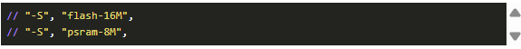 3. 取消注釋和配置:取消注釋這些行并更改值以匹配您的硬件(例如,“flash-8M”,“psram-2M”)。