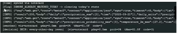 我添加了兩個非常方便的測試字段,以確保一切工作,它們是IGNORE_ALREADY_WATERED_TODAY和FORCE_NOTECARD標志。從名字上看,它們很簡單,但如果我們用天氣數(shù)據(jù)來測試所有東西,以確保閥門的開啟和關(guān)閉正確不止一次,我們可以忽略我們今天已經(jīng)澆水了。在配置blue時,我們可以強制代碼使用記事卡。這是特別有用的,因為ESP32實際上能夠成功地在內(nèi)部進行wifi呼叫,而我們應該期望呼叫在外部失敗-所以我們需要確保我們在測試時不使用wifi,一旦我們知道該部分工作。